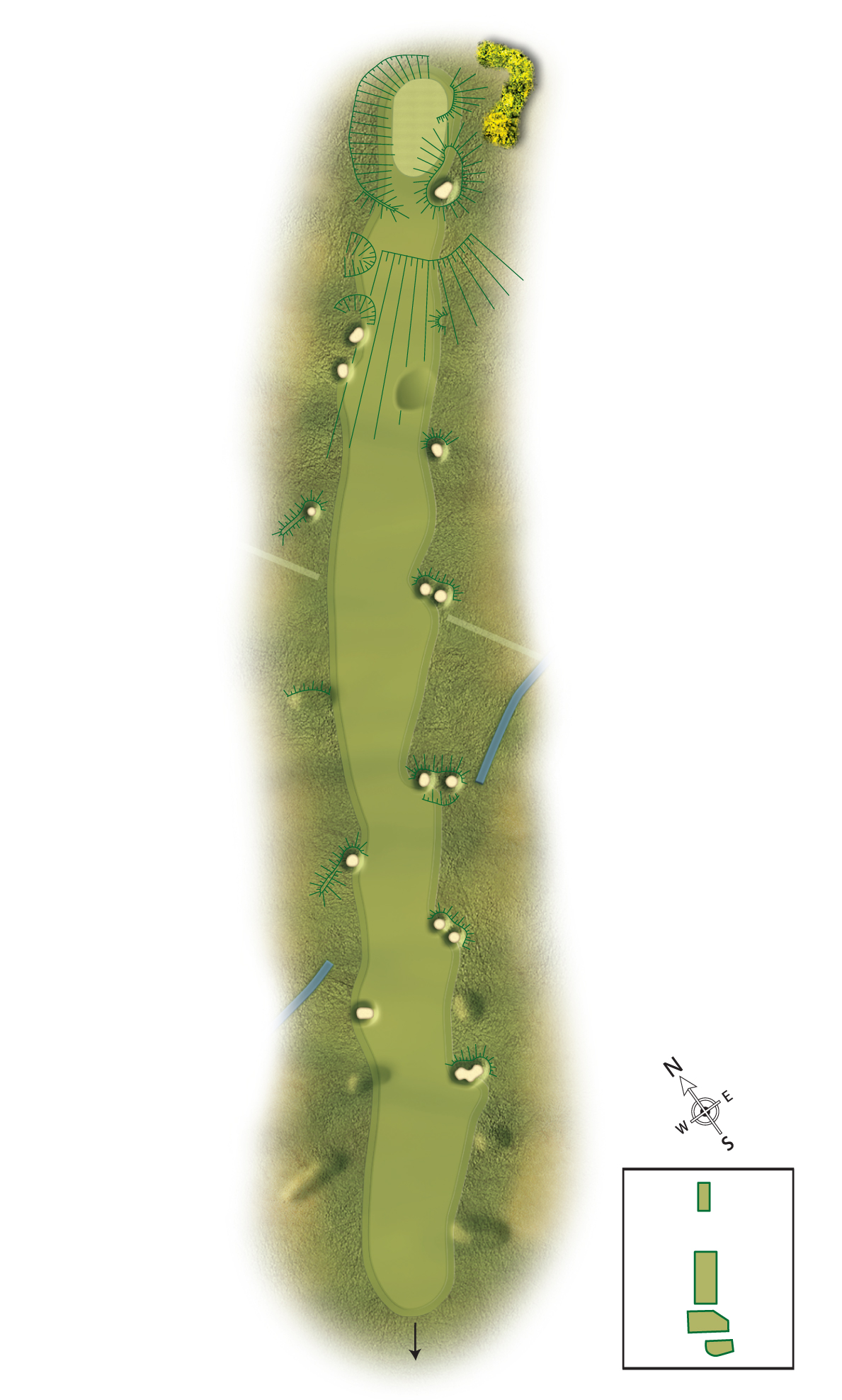 A testing hole so keep it on the fairway, play slightly left with your approach shot as the slope pulls balls right.